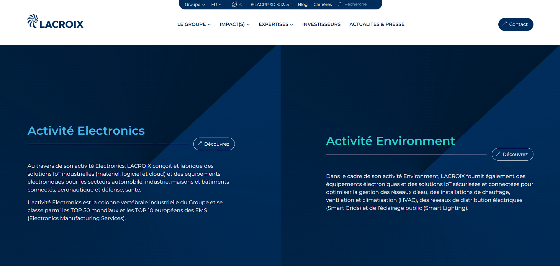 Ce projet concerne la refonte de l’écosystème digital du groupe industriel coté en bourse Lacroix Group, spécialisé dans les technologies électroniques appliquées aux villes et aux territoires (gestion de l’eau, de l’électricité, éclairage urbain intelligent et micro-technologies).